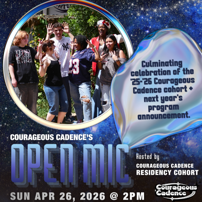 Join us for a powerful open mic hosted by the Courageous Cadence Residency Cohort, a group of emerging youth poets, celebrating the culmination of their 2025–2026 residency.