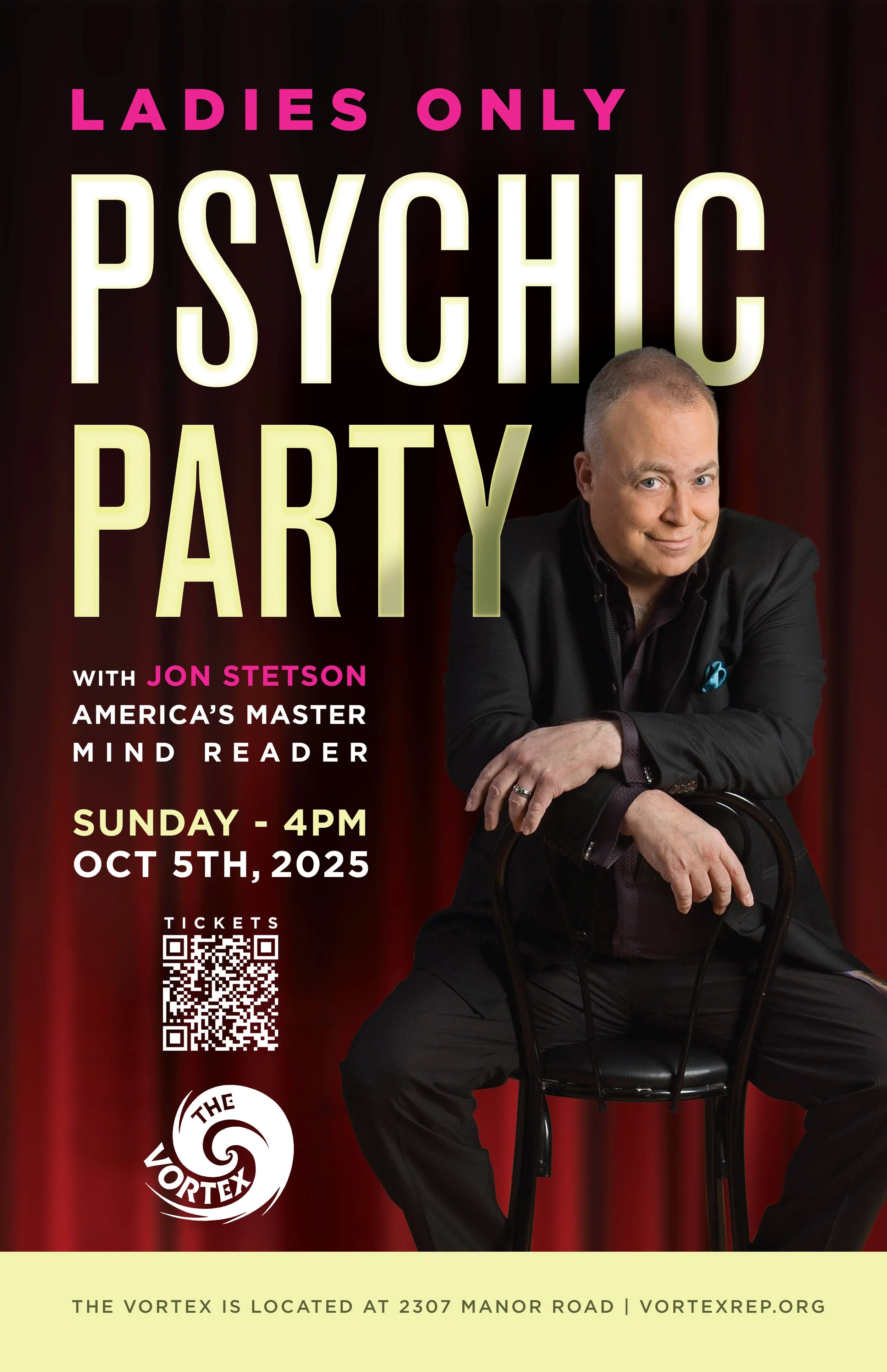 Guests at the LADIES ONLY PSYCHIC PARTY will be enthralled by demonstrations of Jon's unique brand of mind opening, motivational entertainment. However, that is just the beginning! You will be empowered to understand and further develop your own intuitive skills.